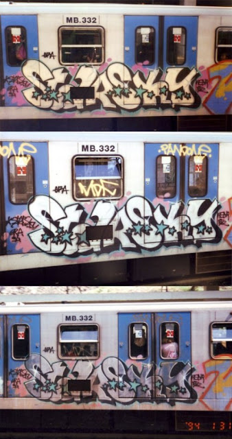 Starsky, apart from being Hutch's partner in the 70's TV series Starsky and Hutch, was also Heko ETC's pseudonym, also known as PANE for his tasty lettering. At the time still a youngster, here we see him getting older over the years until the year 1999, when the subway car changes completely, transforming itself unrecognizably.